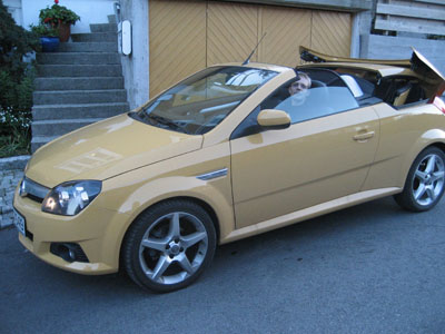 Mor og far låner en bil mens deres bil er på verksted. Vi måtte selvfølgelig prøvekjøre, og ta taket av og på!