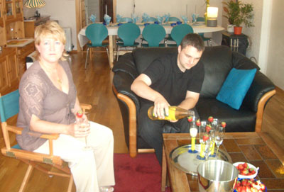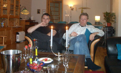 Det ble servert vin, reker og krabbe i heimen i anledningen sommeravslutnig (evt. jobbavslutning). God stemning, og god gang!
