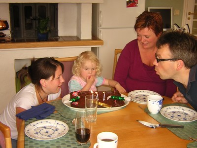 Vilja sin treårs dag ble feiret som den burde! Av onkel og tante fikk Vilja såpebobler, oppblåsbar båt med tilhørende årer og pumpe. Av bestefar fikk Vilja et plaskebasseng. Såpeboblene ble testet etterpå, og var en stor suksess.