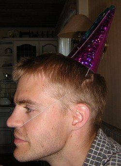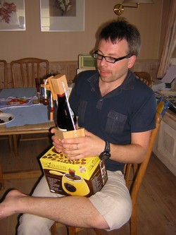 Geir fikk sjkoladevonduesett og en flaske vin pakket inn i en "hjernetrimmer". Alltid kjekt når man får belønning for strevet. Den er foreløpig uløst…