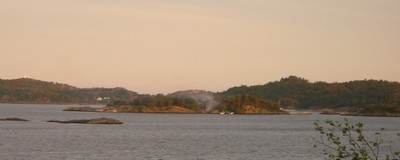 Middag sent på kvelden. Nydelige koteletter og salat. Dette ble akkomagnert av en brann på en øy midt i sundet. Brannvesenet hadde tydeligvis fått beskjed om en brann, men dette var ingen brann! Hvis da ikke bålet var 40 kvadratmeter stort…