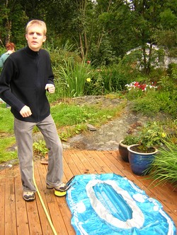 Vi rigget en bocca-bane i oppkjørselen. Fem stk. med to baller blir masse spill!
