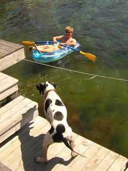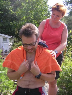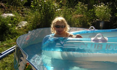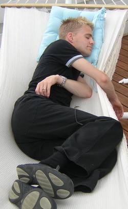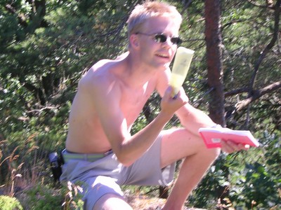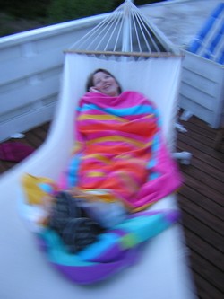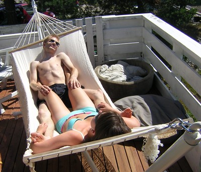 Resten av dagen gikk med til sløving i og rundt hengekøya. Det var varmt og vi steikte. Kristine kjørte Kjell "ut en tur" og hentet ham (noe forsinket) på kveden igjen.