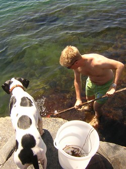 Sløvedag deluxe, just what the doctor orders. Venner av Geir og Helen stoppet innom: Geir, Monika, Sonde (6) og Synniva (3). De hadde med seg enormt med sjømat som vi fortærte! Oooooh my stoooomac.