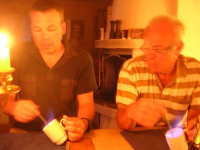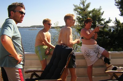 Kjetil og Magnus ble vekket på sengen av Kristine me en kopp kaffe! Bedre start på dagen kan man neppe få! Resten av dagen gikk med til seriøs avsapping med innskudd av sløving. Vi fikk skutt litt med min softgun (morsomt det, men jeg kan fremdeles ikke fatte at fok skyter på hverandre med slikt utstyr. Eller annet utstyr for den slags skyld).