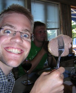 Etter noen nydelige biffer til sen middag, prøvde vi sjokoladefonduen til Geir. Mørk, varm sjokolade på god frukt (ananasen var utrolig bra) er en slager. Vi prøvde oss på en en film ("Out of sight") men den ble for treig, så vi gikk og la oss istedenfor…