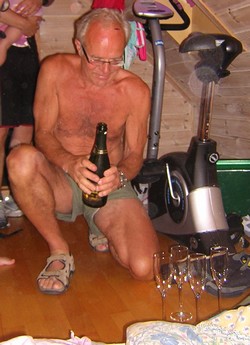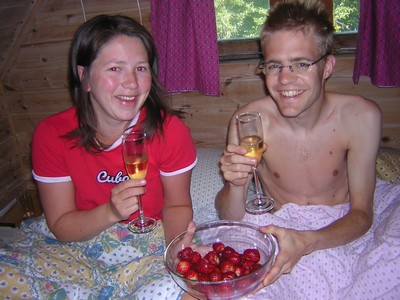 Vi ble vekket av Kjell, Geir, Helen og Vilja som bursdagssangen (Hurra for deg). Med seg hadde de sjampis og jordbær! Fantastisk måte å våkne på!