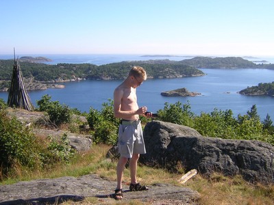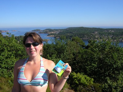 Så gikk vi for å finne en cache! Denne hadde ganske fin utsikt, men en del flått. Magnus fikk 3, og 2 stk. kravlet på Kristine.