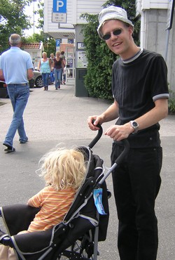 Det skulle bli regn, så vi dro til byen. Det ble utrolig varmt! Vi spiste fiskekaker på byen. Godt! Vilja, tante Kristine og onkel Magnus 'toget' rundt byen. Konduktøren var en raring og Kristiansandspatriot. "Tullemann" definerte Vilja han som.