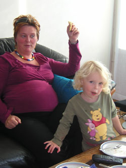 Mor feiret dagen etter tradisjonen. Det betyr at slekt på "begge sider" ankommer heimen for foring av mat og kaker. Alltid festlig!