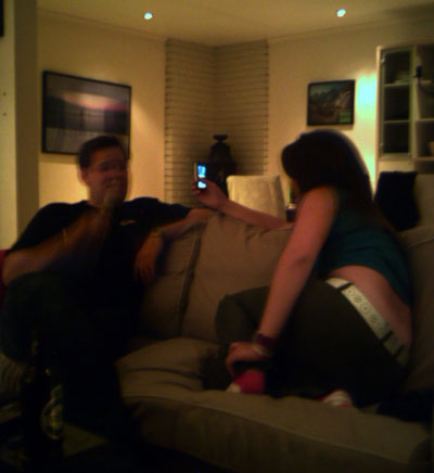 Anniken og Arild kom innom med muffins og skumboller. KJEMPEDIGRE! Ettersom Kjetil (L.) også var i søndagsmodus så fant han også ut at det var en god idé å sløve hos oss.