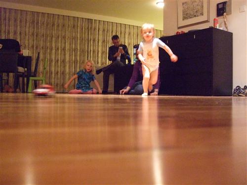 Vi lekte med opptrekkbilene jentene fikk til jul