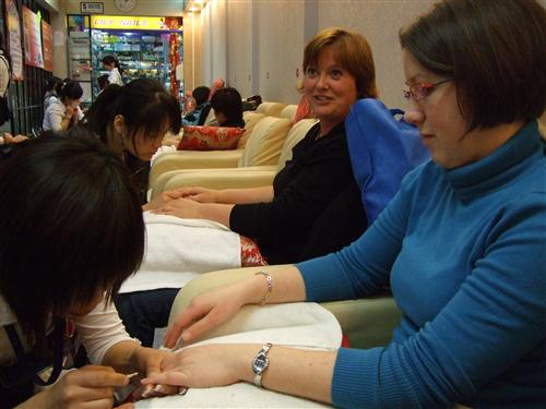 Etter vekking, dusjing, etc, tok vi turen til markedet for å kikke litt. Her kan det handles til den store gullmedaljen, baksiden er at det må prutes. Vi (Helen, Kristine og Magnus) fikk manikyr, jentene i salongen syntes at Magnus var festlig tydeligvis. Pene negler ble det iallfall.
