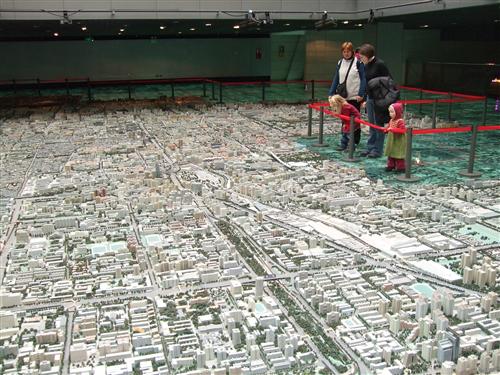 I dag stod Byplanmuseet for tur. Vi tok med oss Vilja og Nori ut på tur (aldri sur). Guideboken sa at det var "spesielt" og "weird". Vel, SÅ spesielt var det vel ikke. Men spennende var det! Den største attraksjonen var den store foto-montasje-modellen av byen. Bildene kunne vi gå på, men vi fikk ikke leke Godzilla i modellbyen, naturlig nok. Men vi fikk se i forhold hvor stor byen er! Den er diger!