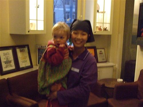 Betjeningen var begeistret for lyshårete Nori (og Vilja)
