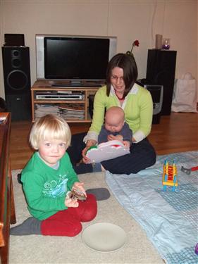 Kristine underholder Jesper og Hannes