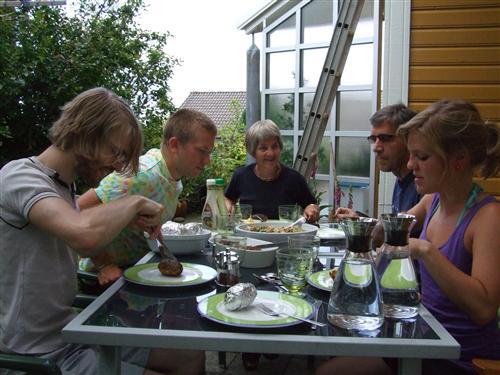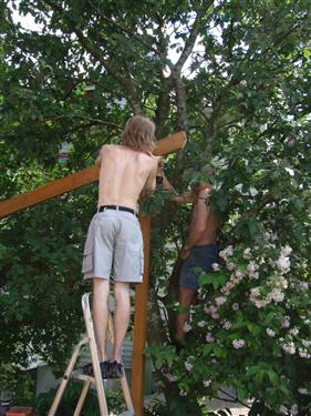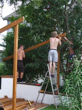 Regntaket måtte justeres og vi ble tilkalt som forsterkninger. Vi fikk mat for strevet.