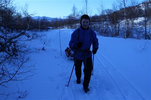 Første lass dras opp til hytta
