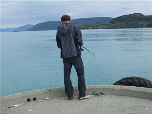 Kjetil fisket på vei hjem. Fikk ingenting.