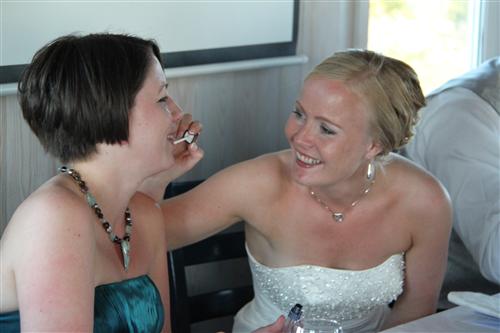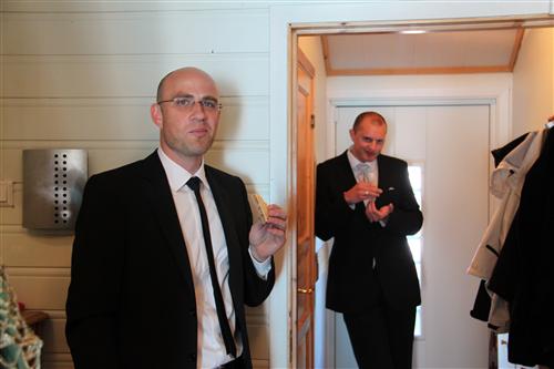 Brudgommen og hans forlover får servert knekkebrød i gangen