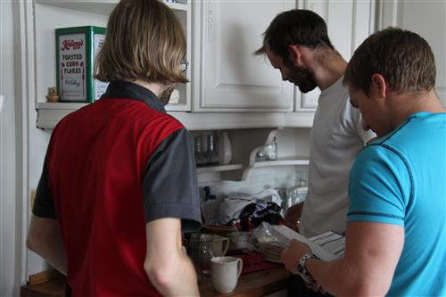 3 mannfolk leser bruksanvisningen. Hva er galt?