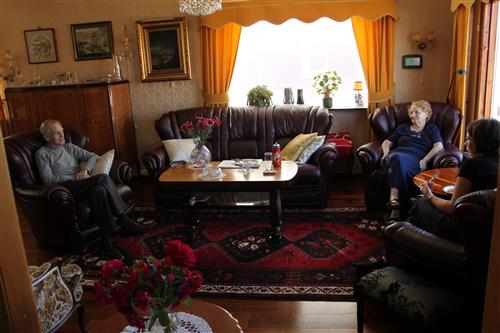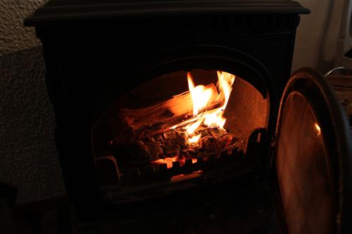 Kristine er i USA. Ute er det 3 grader, regn og kuling. Inne er også kaldt. Jeg fyrer i peisen.