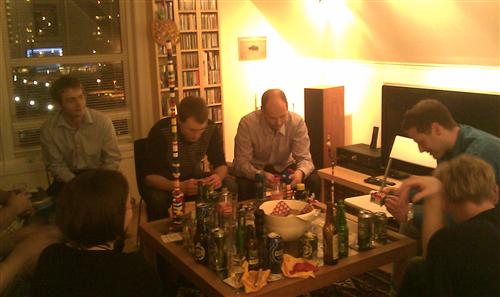 The big Three Zero! Gratulerer! Petter fikk Lego til bursdagen (og PS3, så han bør være fornøyd), bland det med gutter og alkohol, og du har en byggekonkurranse.