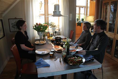 Far sin bursdag Posted on 19.02.2011 by Far hadde bursdag. Vi fikk middag. Og en visning på nytt babytøy til noen vi kjenner godt (hun sparker)!