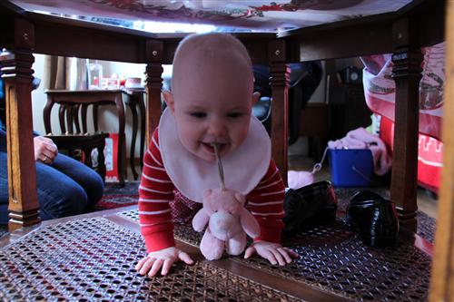 Oldemor har et kjekt bord å krype under