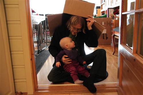 Saken er i boks! Posted on 14.01.2012 by Magnus Først en liten boks.. ... så en stor boks! Og vi sitter på skuldrene! Alltid morsomt!