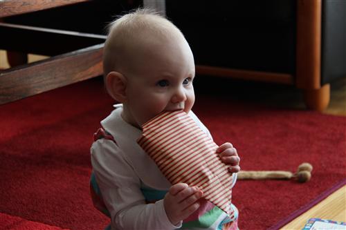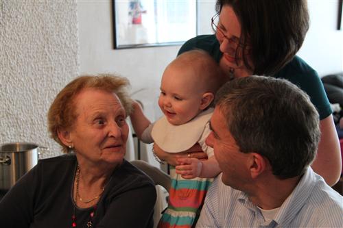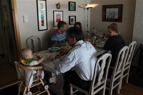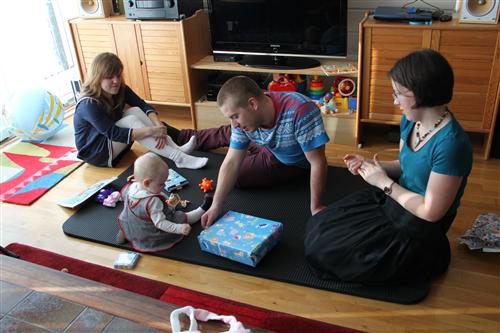Oldemor, faster, onkel Anders, farmor og farfar kom for å feire den store dagen! Masse pakker er spennende, selv om Nora Marie kanskje ikke helt har forstått poenget med papiret enda; det skal spises.