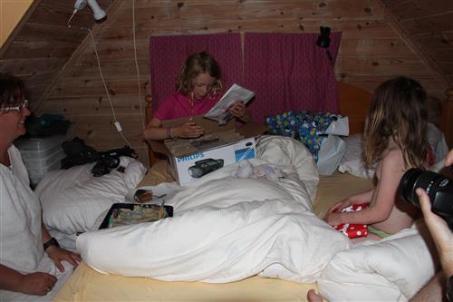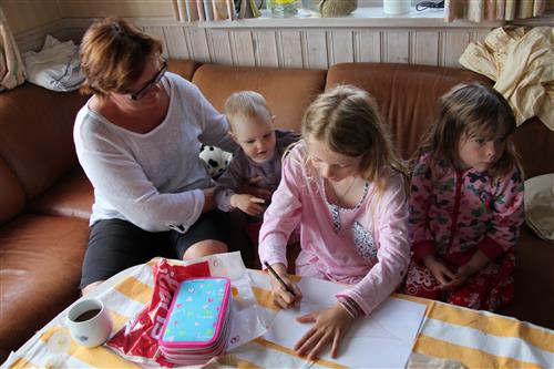 Nora Marie lærte poenget med tegneblyanter av Vilja og Nori.