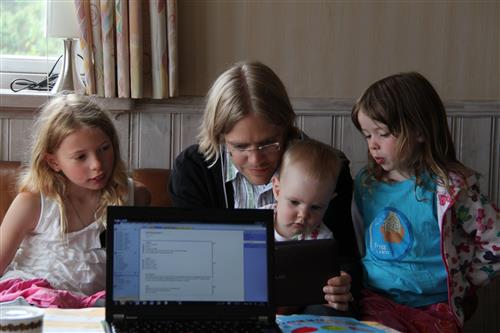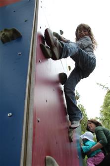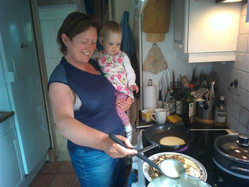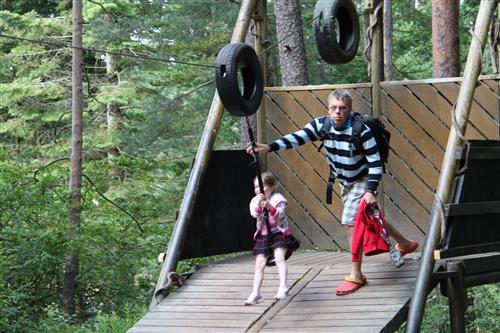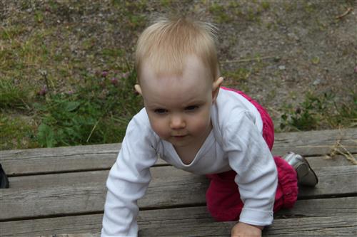 Trappetrening. Bestefar har en kjekk trapp å klatre i.