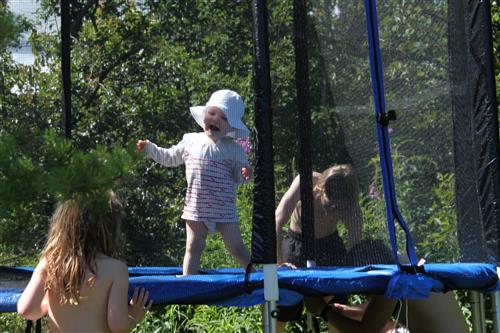 Geir og Magnus monterer trampoline. Det gikk jo bra…