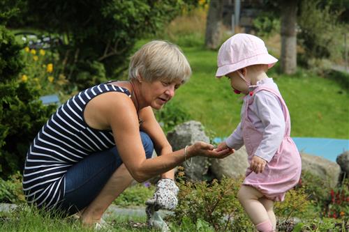 Nora Marie hjelper farmor med luking