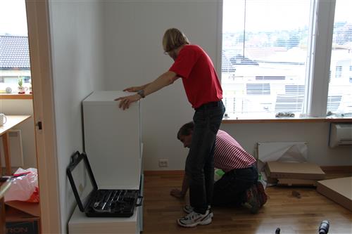 Det monteres hyller til det tekniske