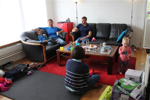 Jone, Mina og Anders på besøk. De hadde med kanel-i-svingene som ble meget godt mottatt.